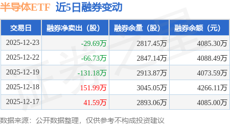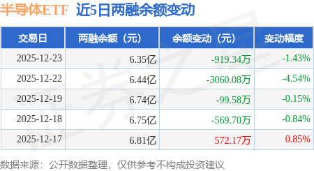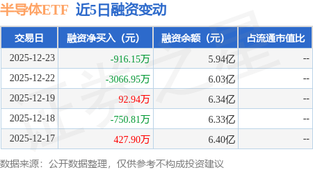 证券之星消息,12月23日,半导体ETF(512480)融资买入1.27亿元,融资偿还1.36亿元,融资净卖出916.15万元,融资余额5.94亿元。