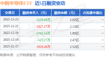 证券之星消息,12月23日,中韩半导体ETF(513310)融资买入1.92亿元,融资偿还2.03亿元,融资净卖出1129.69万元,融资余额2.02亿元,近20个交易日中有11个交易日出现融资净买入。