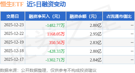 证券之星消息,12月23日,恒生ETF(513660)融资买入552.92万元,融资偿还2035.69万元,融资净卖出1482.77万元,融资余额2.8亿元。