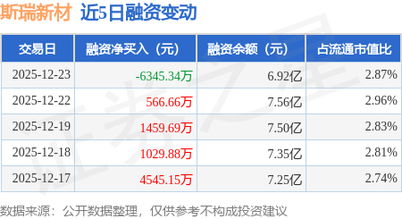 证券之星消息,12月23日,斯瑞新材(688102)融资买入2.53亿元,融资偿还3.17亿元,融资净卖出6345.34万元,融资余额6.92亿元,近20个交易日中有14个交易日出现融资净买入。