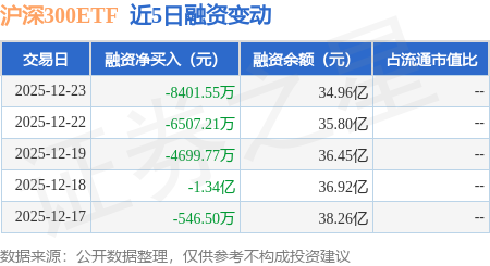 证券之星消息,12月23日,沪深300ETF(510300)融资买入6416.89万元,融资偿还1.48亿元,融资净卖出8401.55万元,融资余额34.96亿元。