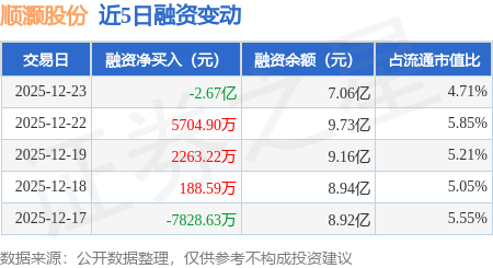 证券之星消息,12月23日,顺灏股份(002565)融资买入2.63亿元,融资偿还5.3亿元,融资净卖出2.67亿元,融资余额7.06亿元,近20个交易日中有12个交易日出现融资净买入。