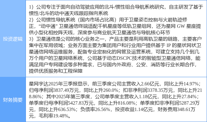 该股为航天,卫星互联网,北斗导航概念热股,当日航天概念上涨4.43%,卫星互联网概念上涨4.07%,北斗导航概念上涨3.61%。