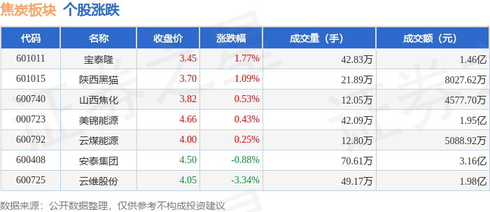 证券之星消息,12月24日焦炭板块较上一交易日上涨0.23%,宝泰隆领涨。当日上证指数报收于3940.95,上涨0.53%。深证成指报收于13486.42,上涨0.88%。焦炭板块个股涨跌见下表: