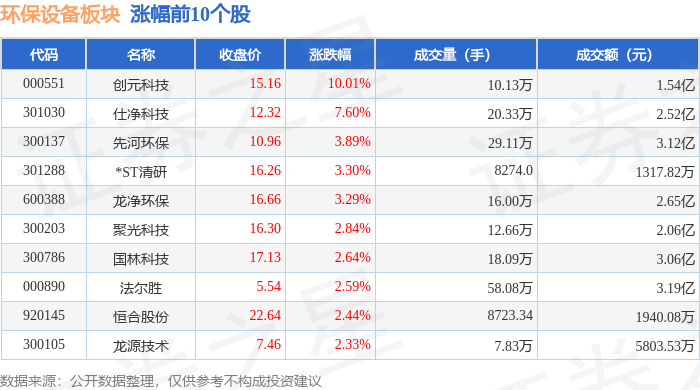证券之星消息,12月24日环保设备板块较上一交易日上涨1.87%,创元科技领涨。当日上证指数报收于3940.95,上涨0.53%。深证成指报收于13486.42,上涨0.88%。环保设备板块个股涨跌见下表: