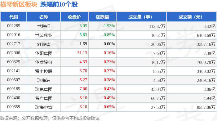 从资金流向上来看,当日横琴新区板块主力资金净流出2765.78万元,游资资金净流出2931.23万元,散户资金净流入5697.01万元。横琴新区板块个股资金流向见下表: