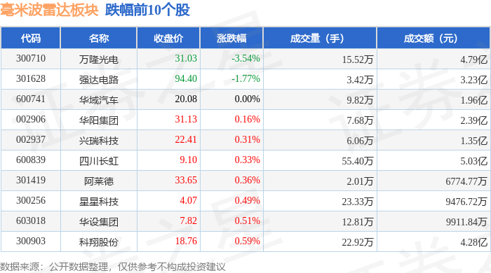 从资金流向上来看,当日毫米波雷达板块主力资金净流入36.21亿元,游资资金净流出22.49亿元,散户资金净流出13.73亿元。毫米波雷达板块个股资金流向见下表: