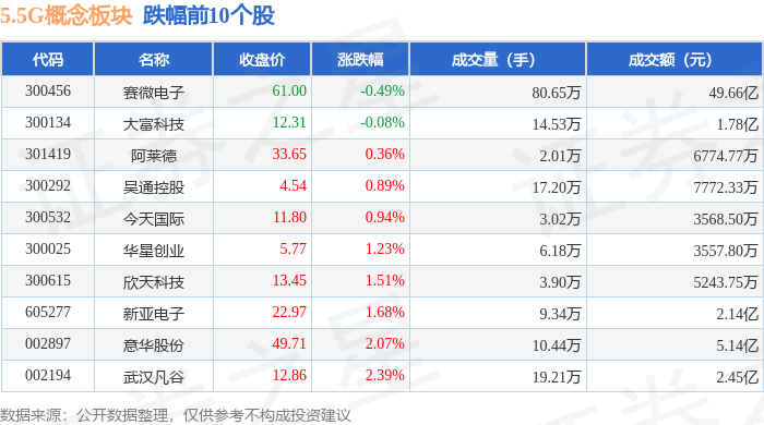 从资金流向上来看,当日5.5G概念板块主力资金净流入10.27亿元,游资资金净流出3.04亿元,散户资金净流出7.24亿元。5.5G概念板块个股资金流向见下表: