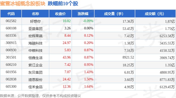从资金流向上来看,当日蜜雪冰城概念股板块主力资金净流出3201.15万元,游资资金净流出4783.39万元,散户资金净流入7984.54万元。蜜雪冰城概念股板块个股资金流向见下表: