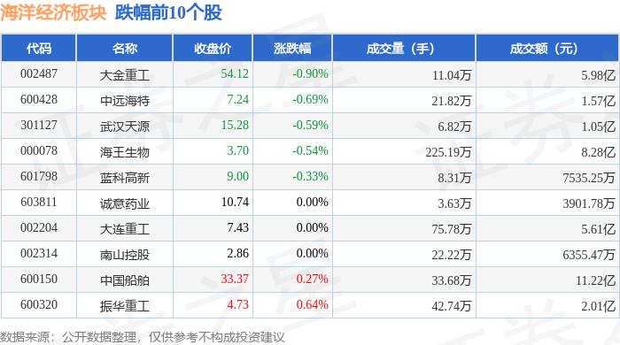 从资金流向上来看,当日海洋经济板块主力资金净流入4.57亿元,游资资金净流出6.68亿元,散户资金净流入2.11亿元。海洋经济板块个股资金流向见下表: