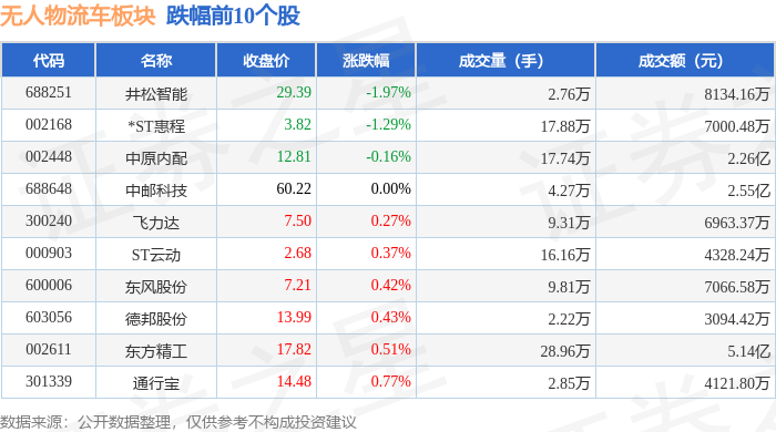 从资金流向上来看,当日无人物流车板块主力资金净流入3.91亿元,游资资金净流出2.85亿元,散户资金净流出1.06亿元。无人物流车板块个股资金流向见下表: