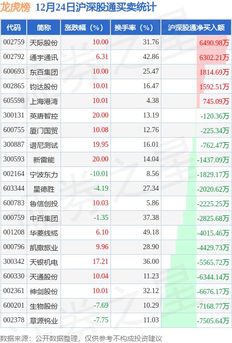 龙虎榜中有沪股通/深股通专用席位(北向资金)现身的个股共25家,其中天际股份以净买入6490.98万元排名第一。详情见下表: