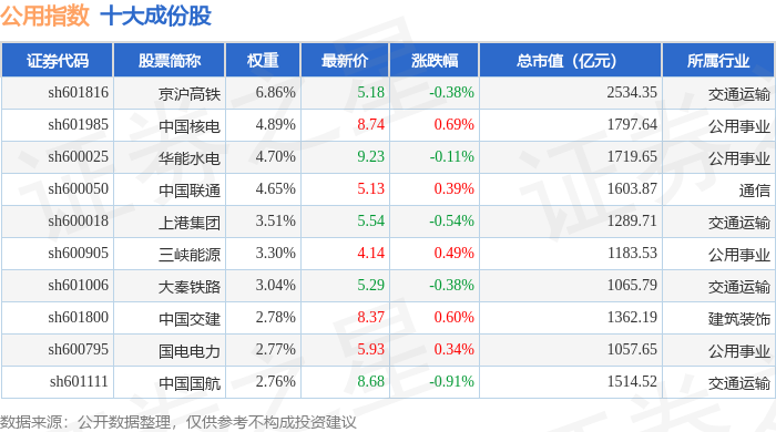 资金流向方面,公用指数(000007)成份股当日主力资金净流出合计2.68亿元,游资资金净流出合计4.21亿元,散户资金净流入合计6.9亿元。成份股资金流向详情见下表:
