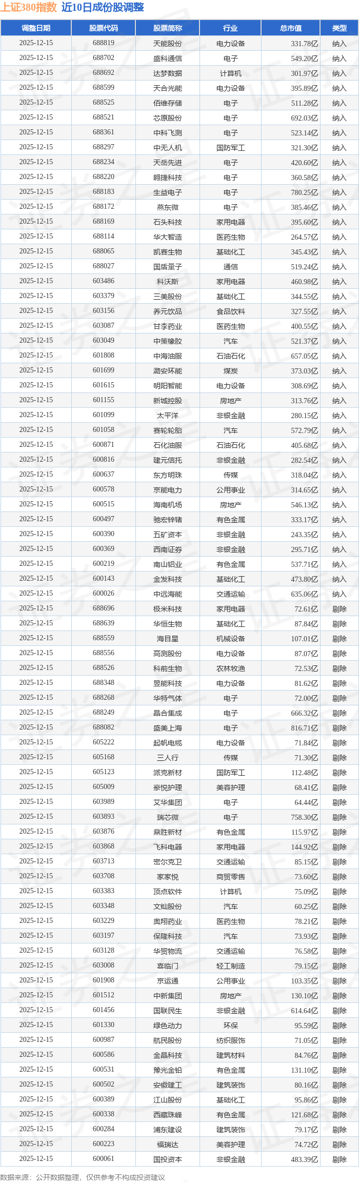 近10日内上证380(000009)指数成份股做了调整,新纳入了38只股票,剔除了38只股票。