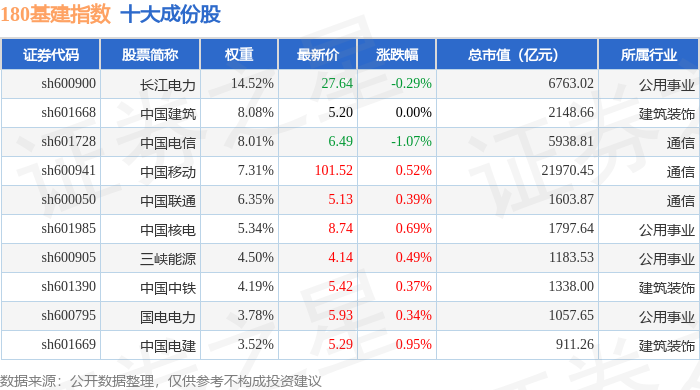 180基建(000025)指数十大成份股详情如下: