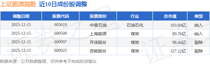 近10日内上证能源(000032)指数成份股做了调整,新纳入了2只股票,剔除了2只股票。