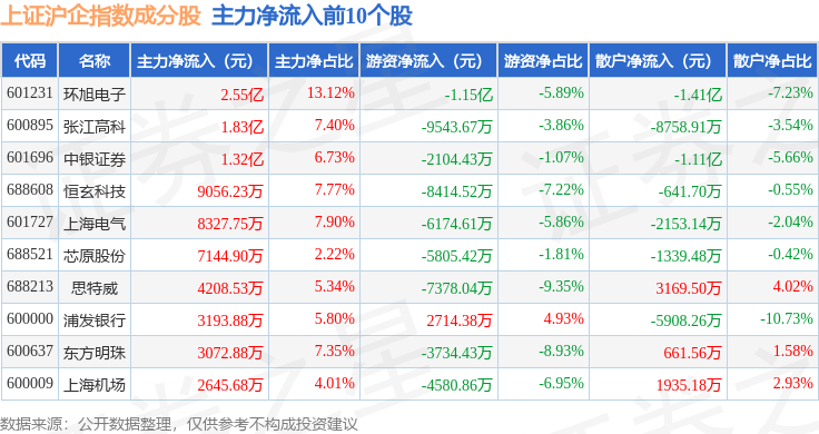 资金流向方面,上证沪企(000062)指数成份股当日主力资金净流出合计1.17亿元,游资资金净流出合计3.51亿元,散户资金净流入合计4.68亿元。成份股资金流向详情见下表: