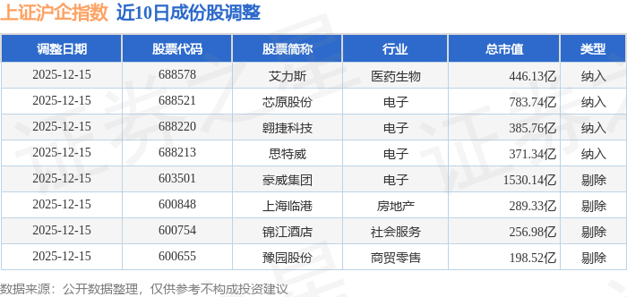 近10日内上证沪企(000062)指数成份股做了调整,新纳入了4只股票,剔除了4只股票。