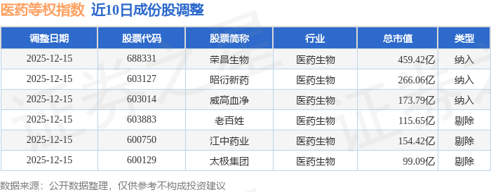 近10日内医药等权(000075)指数成份股做了调整,新纳入了3只股票,剔除了3只股票。