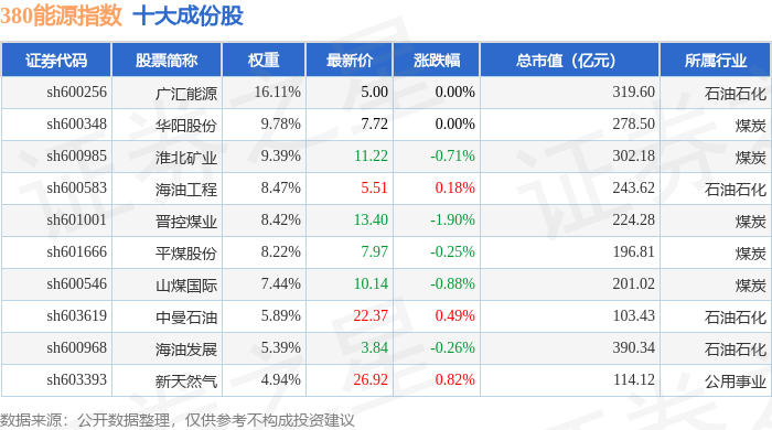 近10日内380能源(000104)指数成份股做了调整,新纳入了3只股票。