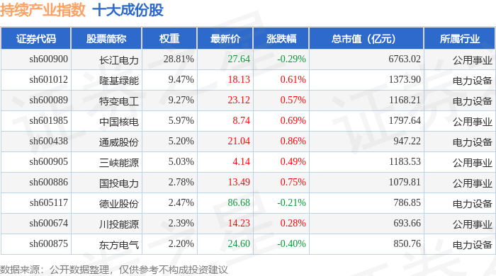 证券之星消息,12月24日,持续产业(000114)指数报收于1251.48点,涨0.69%,成交219.45亿元,换手率0.69%。当日该指数成份股中,上涨的有34家,奥特维以14.79%的涨幅领涨,下跌的有4家,东方电气以0.4%的跌幅领跌。