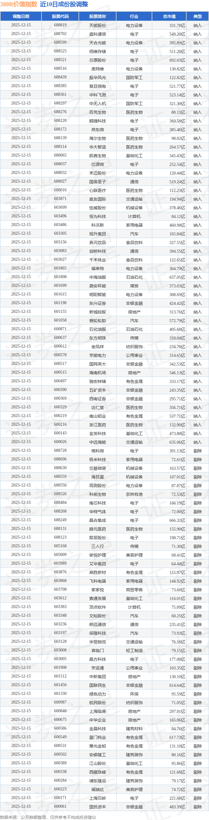 近10日内380R价值(000120)指数成份股做了调整,新纳入了49只股票,剔除了42只股票。