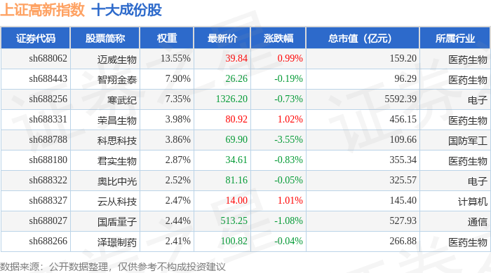 证券之星消息,12月24日,上证高新(000131)指数报收于3563.07点,涨0.89%,成交325.05亿元,换手率1.38%。当日该指数成份股中,上涨的有40家,思瑞浦以10.1%的涨幅领涨,下跌的有10家,科思科技以3.55%的跌幅领跌。