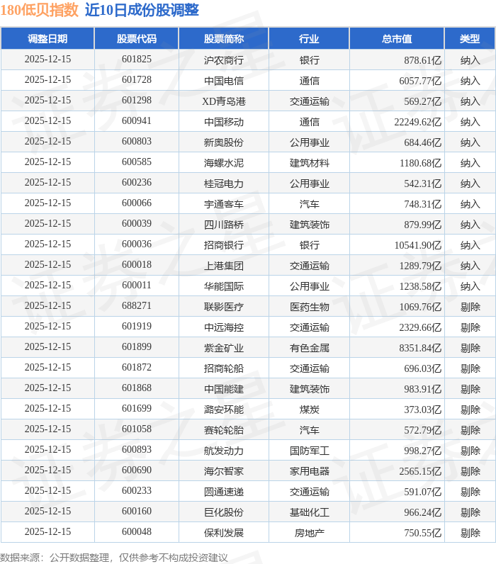 近10日内180低贝(000136)指数成份股做了调整,新纳入了12只股票,剔除了12只股票。