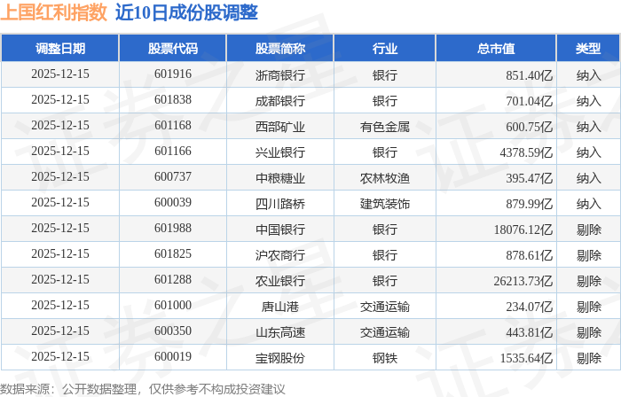近10日内上国红利(000151)指数成份股做了调整,新纳入了6只股票,剔除了6只股票。