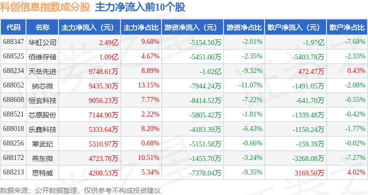 资金流向方面,科创信息(000682)指数成份股当日主力资金净流入合计1803.17万元,游资资金净流入合计522.06万元,散户资金净流出合计2325.22万元。成份股资金流向详情见下表: