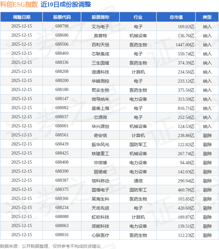 近10日内科创ESG(000691)指数成份股做了调整,新纳入了12只股票,剔除了12只股票。