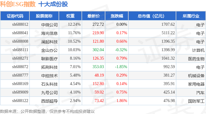 证券之星消息,12月24日,科创ESG(000691)指数报收于1426.1点,涨0.59%,成交317.15亿元,换手率1.12%。当日该指数成份股中,上涨的有41家,奥特维以14.79%的涨幅领涨,下跌的有8家,华海清科以2.38%的跌幅领跌。