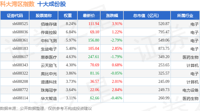 科大湾区(000697)指数十大成份股详情如下: