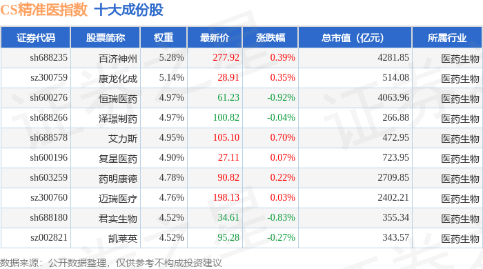 CS精准医(000863)指数十大成份股详情如下:
