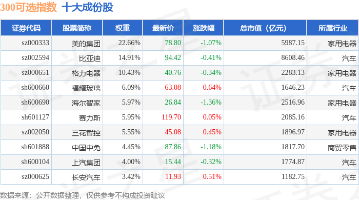 证券之星消息,12月24日,300可选(000911)指数报收于6477.13点,跌0.4%,成交237.3亿元,换手率0.63%。当日该指数成份股中,上涨的有8家,德赛西威以2.11%的涨幅领涨,下跌的有10家,海尔智家以1.36%的跌幅领跌。