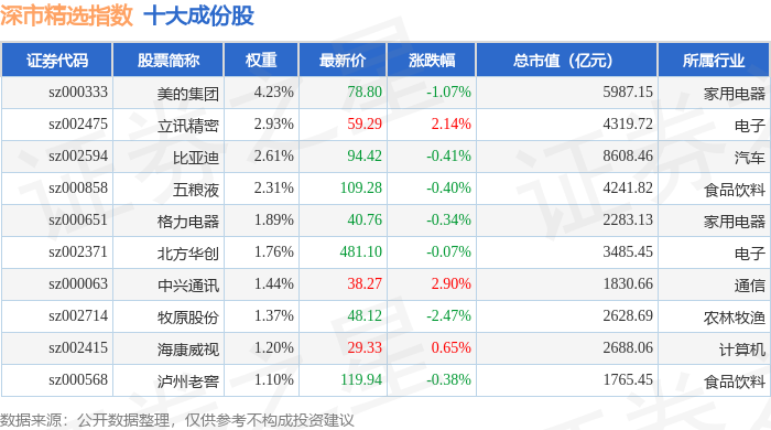 资金流向方面,深市精选(399013)指数成份股当日主力资金净流入合计40.4亿元,游资资金净流出合计37.76亿元,散户资金净流出合计2.64亿元。成份股资金流向详情见下表: