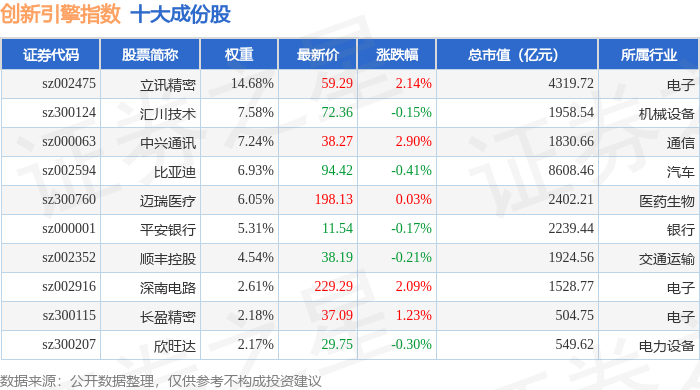 创新引擎(399050)指数十大成份股详情如下: