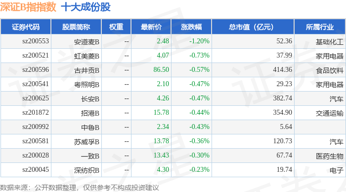 深证B指(399108)指数十大成份股详情如下: