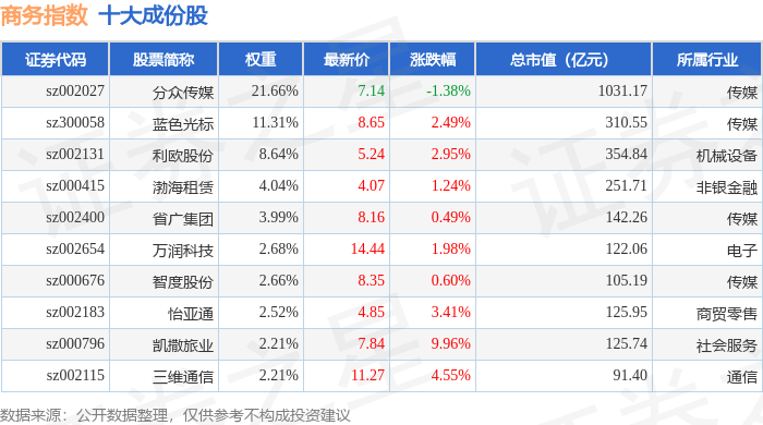 商务指数(399242)十大成份股详情如下: