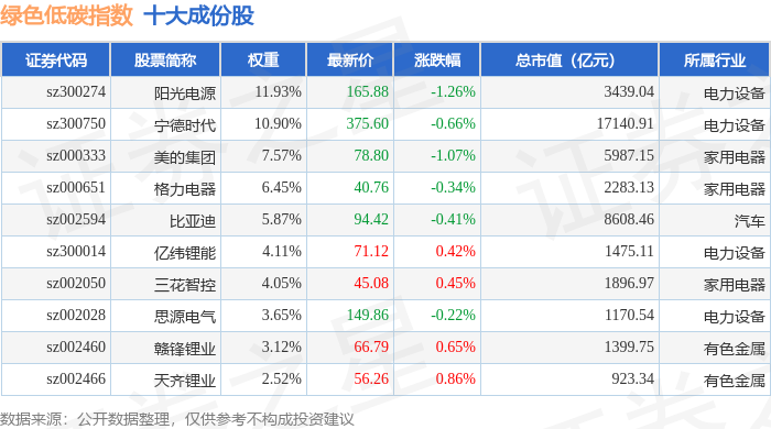 绿色低碳(399258)指数十大成份股详情如下: