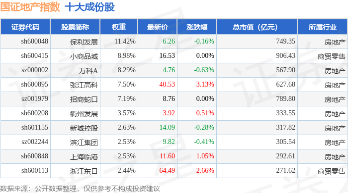 证券之星消息,12月24日,国证地产(399393)指数报收于3128.52点,涨0.65%,成交111.25亿元,换手率1.17%。当日该指数成份股中,上涨的有31家,华联控股以9.95%的涨幅领涨,下跌的有11家,三湘印象以2.05%的跌幅领跌。