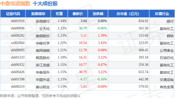 中盘低波(399406)指数十大成份股详情如下: