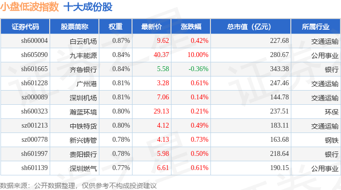 证券之星消息,12月24日,小盘低波(399408)指数报收于15253.43点,涨0.69%,成交284.87亿元,换手率0.87%。当日该指数成份股中,上涨的有112家,厦门国贸以10.08%的涨幅领涨,下跌的有26家,森麒麟以1.72%的跌幅领跌。