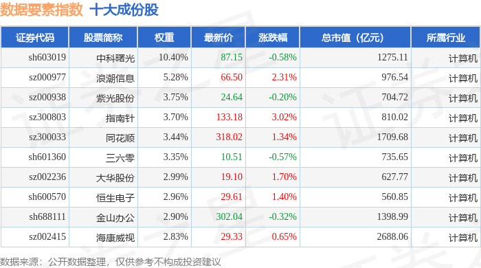 证券之星消息,12月24日,数据要素(399418)指数报收于4031.19点,涨0.86%,成交401.49亿元,换手率0.79%。当日该指数成份股中,上涨的有43家,深桑达A以6.58%的涨幅领涨,下跌的有7家,锐捷网络以1.63%的跌幅领跌。
