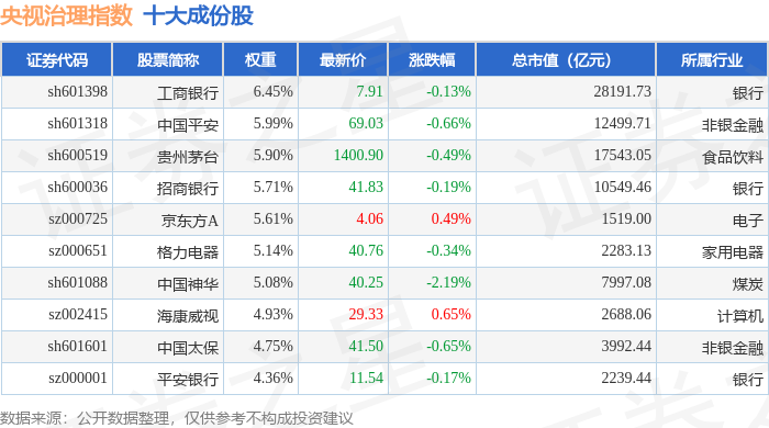 证券之星消息,12月24日,央视治理(399554)指数报收于7658.29点,涨0.17%,成交367.38亿元,换手率0.31%。当日该指数成份股中,上涨的有26家,兆驰股份以10.07%的涨幅领涨,下跌的有23家,中国神华以2.19%的跌幅领跌。