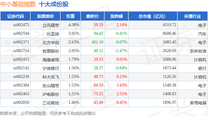 证券之星消息,12月24日,中小基础(399623)指数报收于8954.82点,涨1.16%,成交2545.11亿元,换手率2.09%。当日该指数成份股中,上涨的有281家,兆驰股份以10.07%的涨幅领涨,下跌的有81家,章源钨业以7.75%的跌幅领跌。