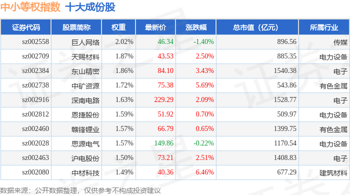 证券之星消息,12月24日,中小等权(399634)指数报收于4286.12点,涨1.0%,成交1169.97亿元,换手率1.43%。当日该指数成份股中,上涨的有68家,麦格米特以10.0%的涨幅领涨,下跌的有31家,恺英网络以4.09%的跌幅领跌。