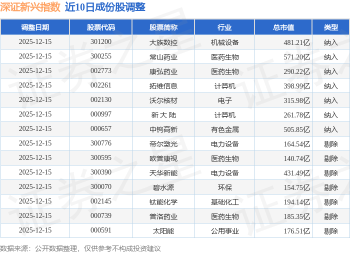 近10日内深证新兴(399641)指数成份股做了调整,新纳入了7只股票,剔除了7只股票。