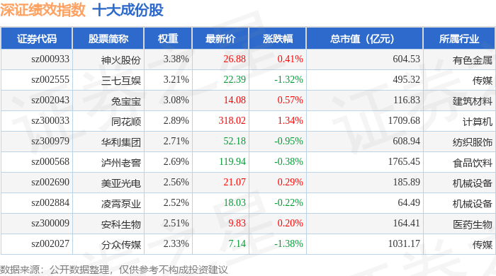 资金流向方面,深证绩效(399655)指数成份股当日主力资金净流出合计13.42亿元,游资资金净流入合计1192.99万元,散户资金净流入合计13.3亿元。成份股资金流向详情见下表: