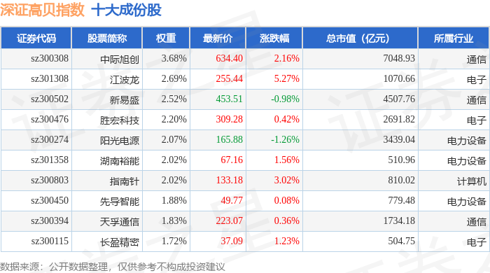 证券之星消息,12月24日,深证高贝(399662)指数报收于2438.14点,涨1.91%,成交2379.89亿元,换手率2.63%。当日该指数成份股中,上涨的有86家,麦格米特以10.0%的涨幅领涨,下跌的有13家,恺英网络以4.09%的跌幅领跌。